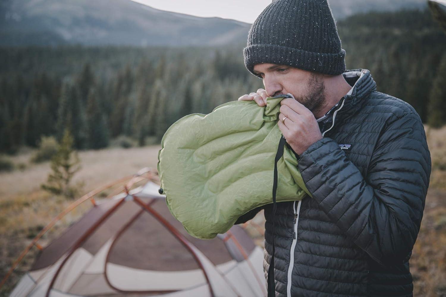 Ultralight Inflatable Camping Travel Pillow – ALUFT 2.0 (Green), crafted with the latest highly durable elastic TPU fabric, this pillow is now more resilient and water-resistant. Its compact design for easy storage, folding down to 5×2 inches, for easy portability, while inflating to a 16x12x4 inches for superior head and lumbar support. With rubber anti-slipping dots and a latch strap, no more slipping off your pillow. Easy to inflate with just 3-5 breaths!