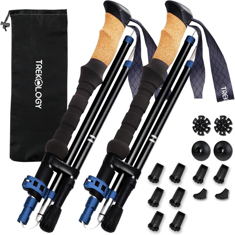 “TREKOLOGY Trek-Z Cork Grip Trekking Poles Bundle with Rubber Tip Replacements – Lightweight Folding Hiking Poles, Adjustable Height, Compact Travel Design, Premium Aluminum Walking Sticks for Men & Women Step into every walk, hike, or adventure with greater comfort, confidence, and support using this complete TREKOLOGY Trek-Z bundle designed to move with you wherever life takes you. This all-in-one set includes a pair of lightweight, foldable trekking poles built to help reduce strain on your knees and legs while improving balance on trails, roads, and everyday paths—plus durable rubber tip replacements that add extra grip, protection, and quiet performance on a wide range of surfaces. The ergonomic cork grips naturally wick away sweat to keep your hands dry, while the EVA foam shafts provide a secure, non-slip hold even during long hikes or changing terrain. With an easy-to-adjust height system, the poles can be customized for different users and walking conditions, giving you reliable support whether you’re exploring mountain trails, traveling, running errands, or enjoying a casual walk. The included rubber tips help absorb shock, reduce noise on hard surfaces, protect the pole ends from wear, and enhance stability indoors or outdoors, making this bundle a practical upgrade for daily use. Compact enough to pack and strong enough to rely on, this Trek-Z bundle is a smart, convenient choice for anyone looking for safer steps, smoother movement, and more enjoyable adventures every day.”